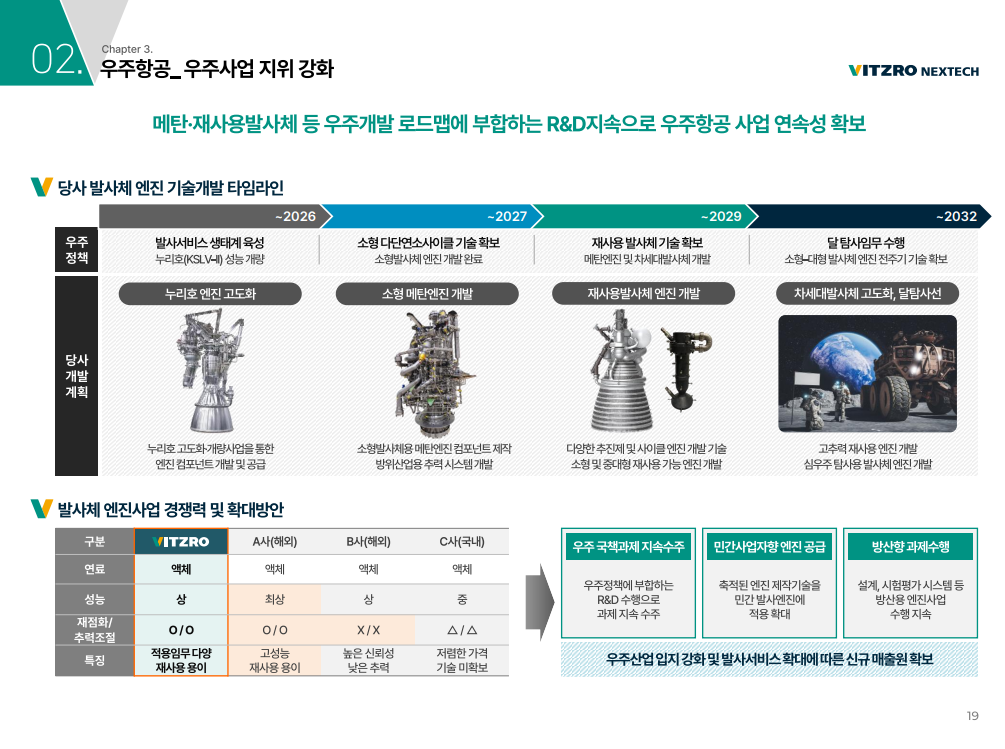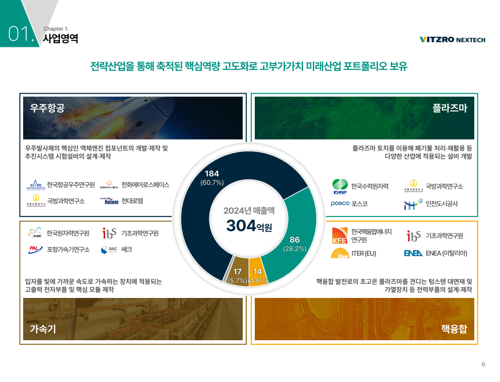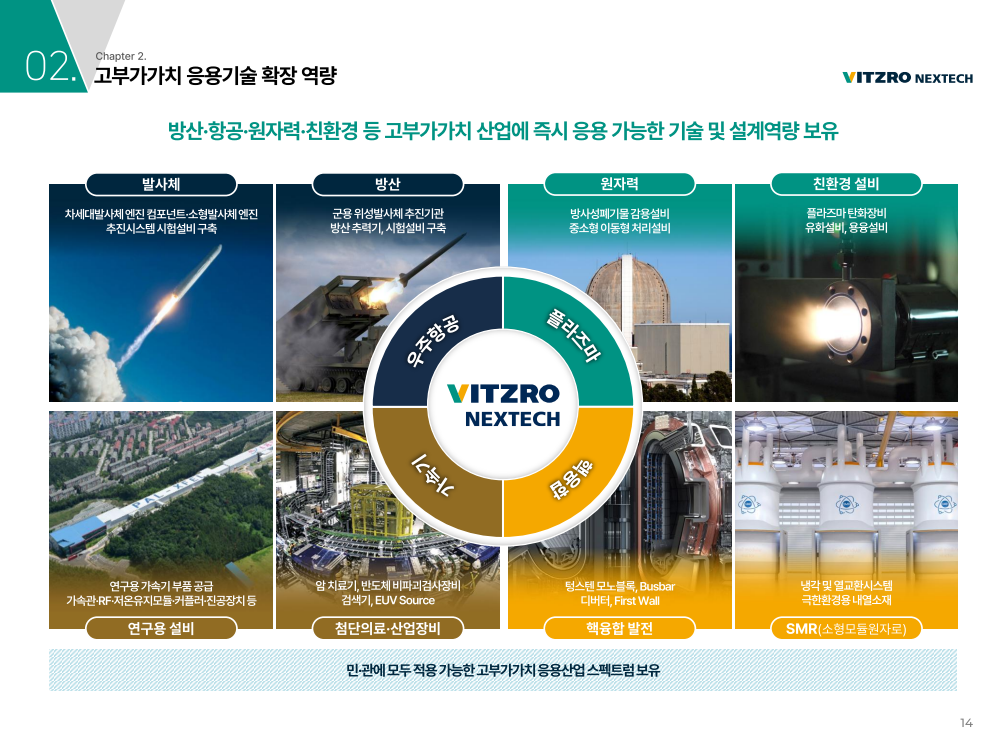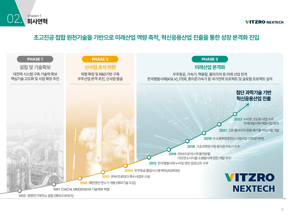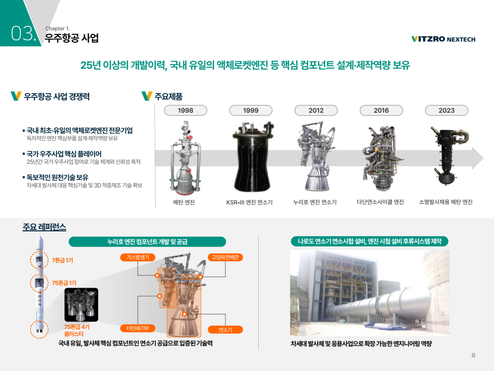 비츠로넥스텍은 전력 변환·방산·우주항공 장비 전문기업으로, 모회사인 비츠로테크의 자회사입니다. 주력 사업은 고전압 전력장치, 추진제 제어 시스템, 전원공급 모듈, 반도체 장비용 전력 솔루션 등으로 구성되어 있으며, 누리호 프로젝트 참여를 통해 기술력을 입증했습니다. 최근에는 AI 반도체용 전력 모듈 개발로 새로운 성장 축을 확보했습니다.