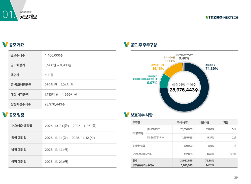 기관 경쟁률은 800~1,000대 1 수준으로 예측되며, 공모가 상단 확정 가능성이 높습니다. 또한 의무보유 확약 비율이 25% 이상일 경우, 상장 직후 유통물량이 적어 단기 수급 탄력이 예상됩니다.