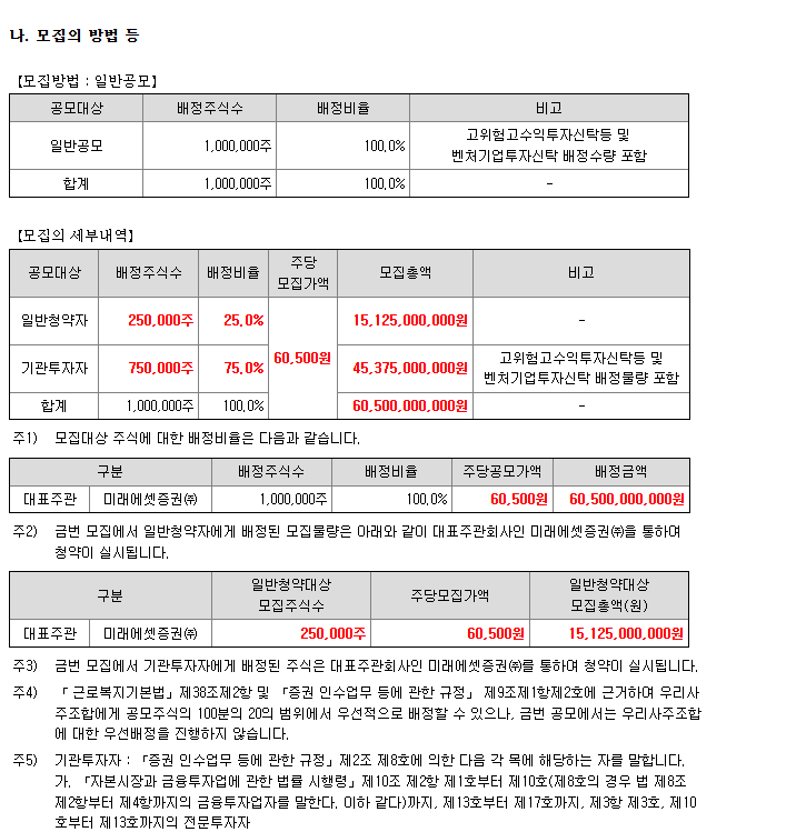 - 청약 주관사: 미래에셋증권