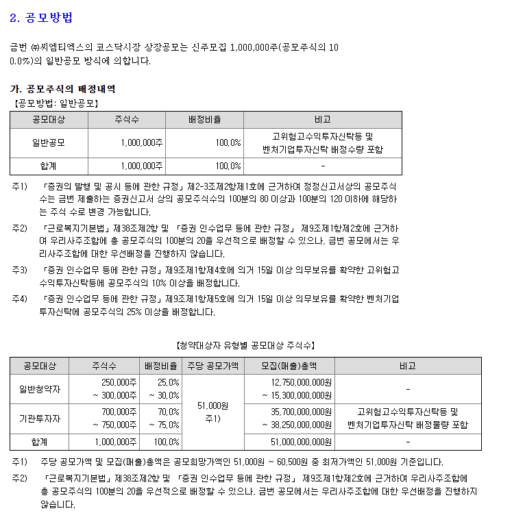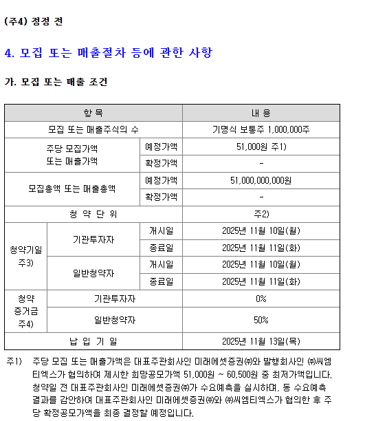 4. 씨엠티엑스 공모 구조 및 청약 일정